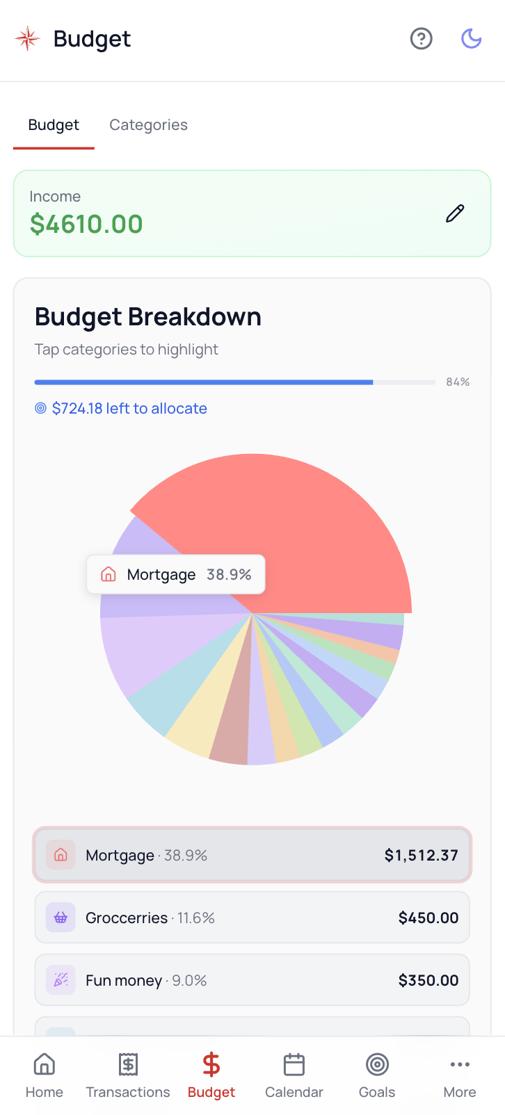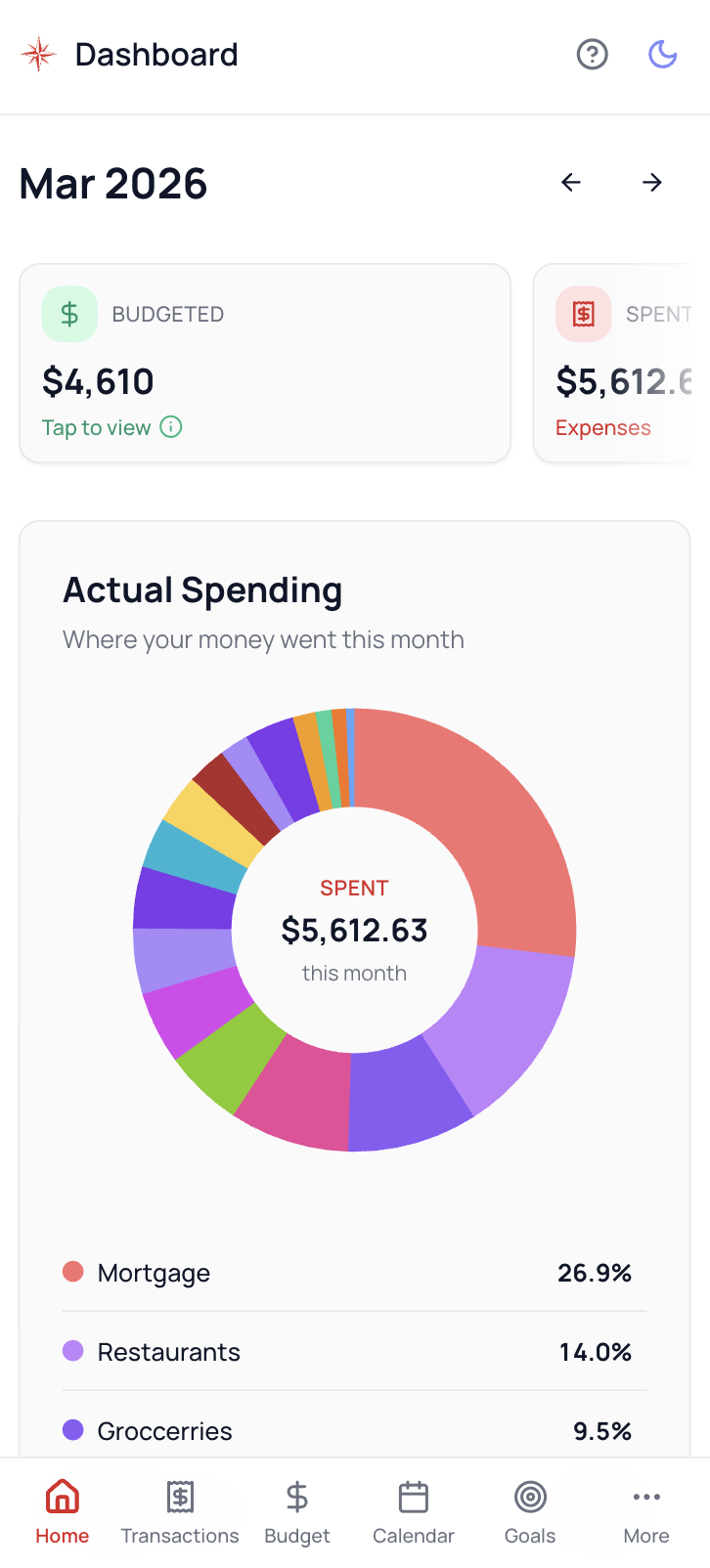 The dashboard is clean and unintimidating. It shows you how much you have budgeted, how much you have spent, and how much is left — no charts you have to learn to interpret, no terminology to decode. It is the first budgeting app that feels like it was actually designed for someone who has never budgeted before.